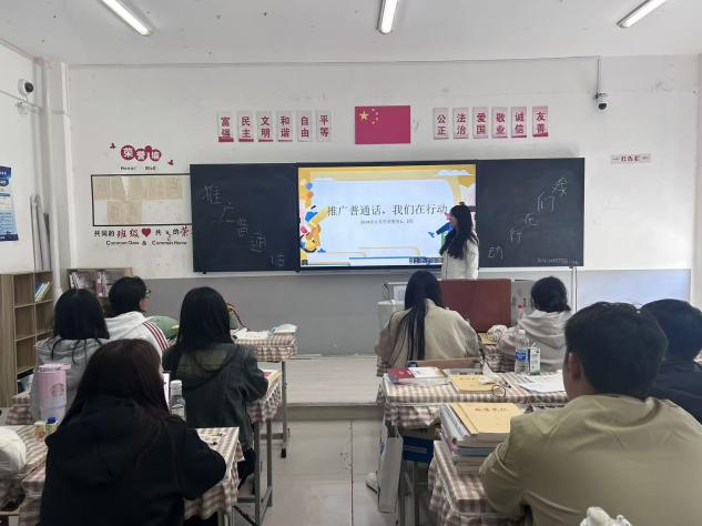 本次活动由各班级团支书组织,以班级为单位开展。活动通过观看普通话推广宣传片、学习普通话知识、分享使用普通话的小故事等形式,向同学们普及普通话的基础知识、发展历程及其在促进民族交流、推动社会发展中的重要作用。视频内容结合生动的语言案例、趣味发音练习和常见误区解析,帮助同学们了解普通话的语音、词汇与语法规范,提升语言表达能力。